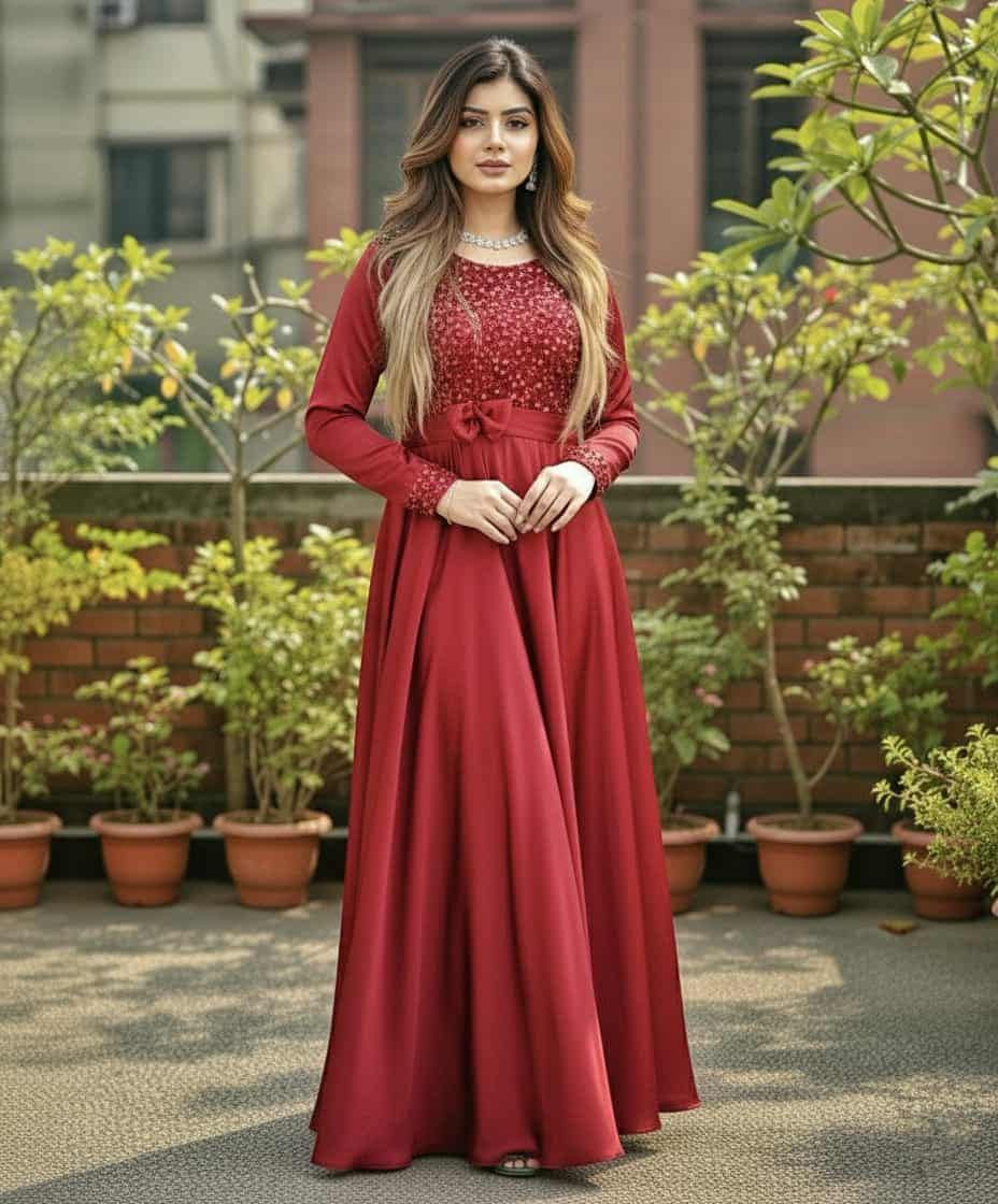 সিক্যুয়েন্স ওয়ার্ক রেডিমেড সিল্ক পার্টি গাউন